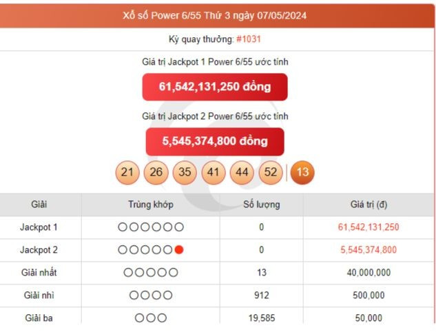 Xem kết quả xổ số Vietlott Power 6/55 9/5, theo dõi KQXS Vietlott mới nhất trên Báo Giáo dục và Thời đại để không bỏ lỡ thời gian nhận thưởng.