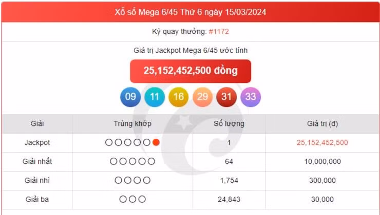 Kết quả xổ số Vietlott ngày 16/3/2024