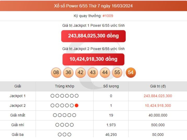 Kết quả xổ số Vietlott ngày 15/3/2024