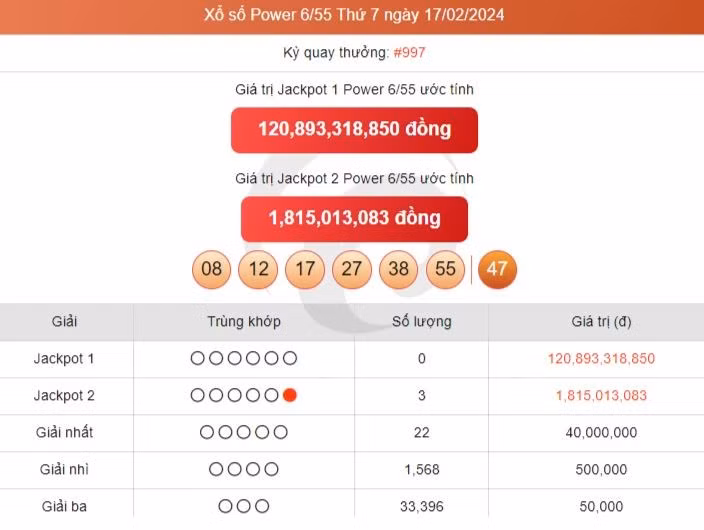 Kết quả xổ số Vietlott ngày 17/2/2024