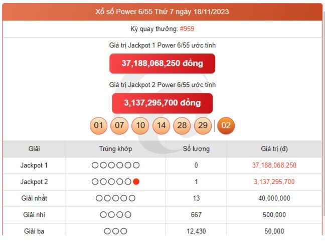 Kết quả xổ số Vietlott thứ Bảy ngày 18/11/2023