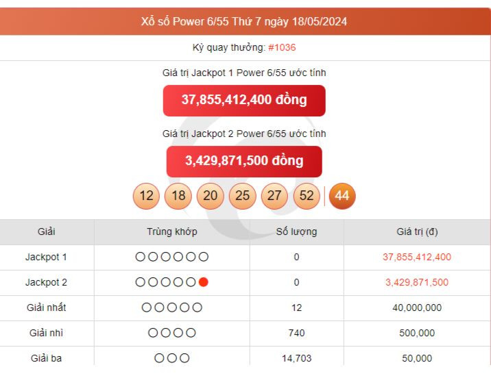 Kết quả xổ số Vietlott ngày 18/5/2024