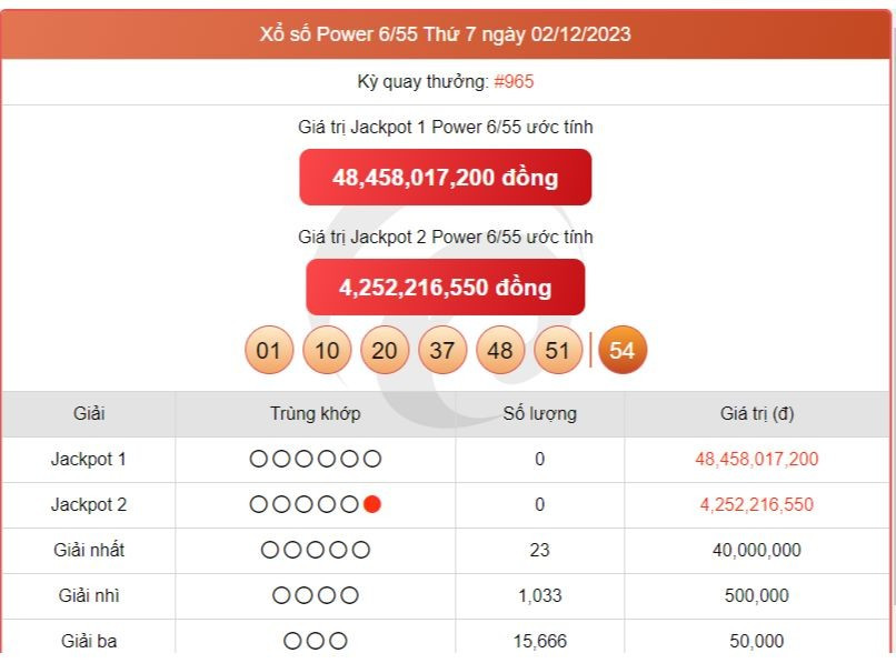 Kết quả xổ số Vietlott Chủ nhật ngày 3/12