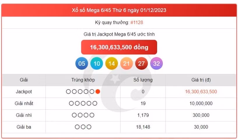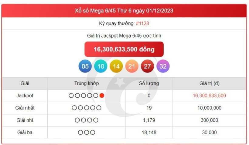 Kết quả xổ số Vietlott thứ Sáu ngày 1/12