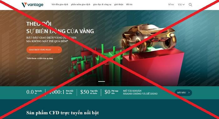 Giao diện của sàn ngoại hối VANTAGE, sàn hoạt động trái pháp luật tại Việt Nam.