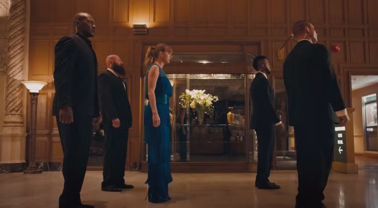 Trong MV “Delicate” của Taylor Swift, câu chuyện của cô bắt đầu tại khách sạn, nơi cô thể hiện những khó khăn khi trở nên nổi tiếng, bao gồm những người hâm mộ cuồng nhiệt, những phóng viên đáng ghét và những vệ sĩ luôn theo sát cô từng bước.