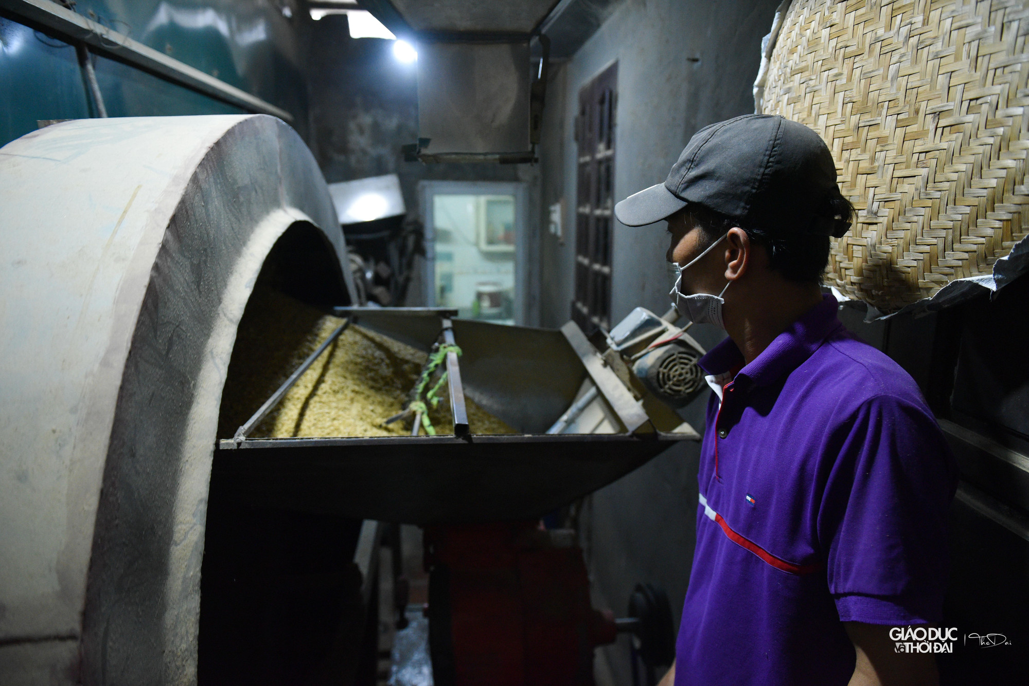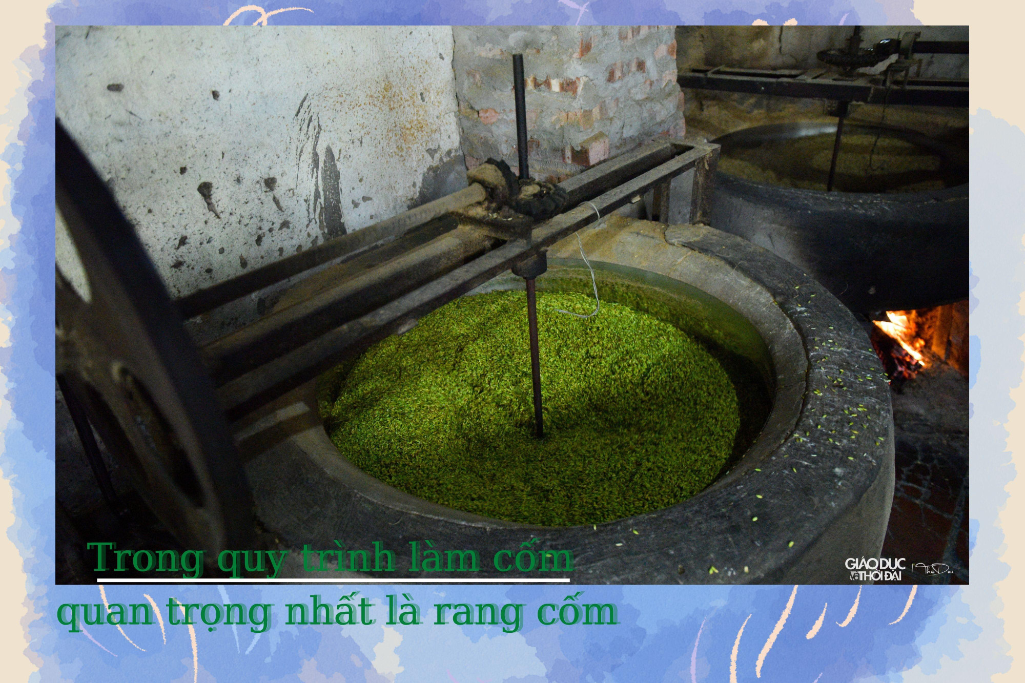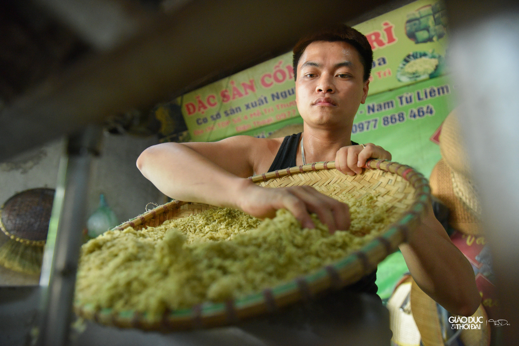 | “Rang cốm là một nghệ thuật, rang phải dùng củi gỗ chứ không dùng than, như vậy cốm mới dậy mùi. Lúc bắt đầu rang thì phải để to lửa, khi cốm tái thì phải giảm lửa, bởi nếu lửa to quá sẽ bị cháy, còn lửa nhỏ quá cốm sẽ không đạt yêu cầu dẻo. Mỗi mẻ rang kéo dài khoảng hơn 2 tiếng". Anh Hòa chia sẻ. |