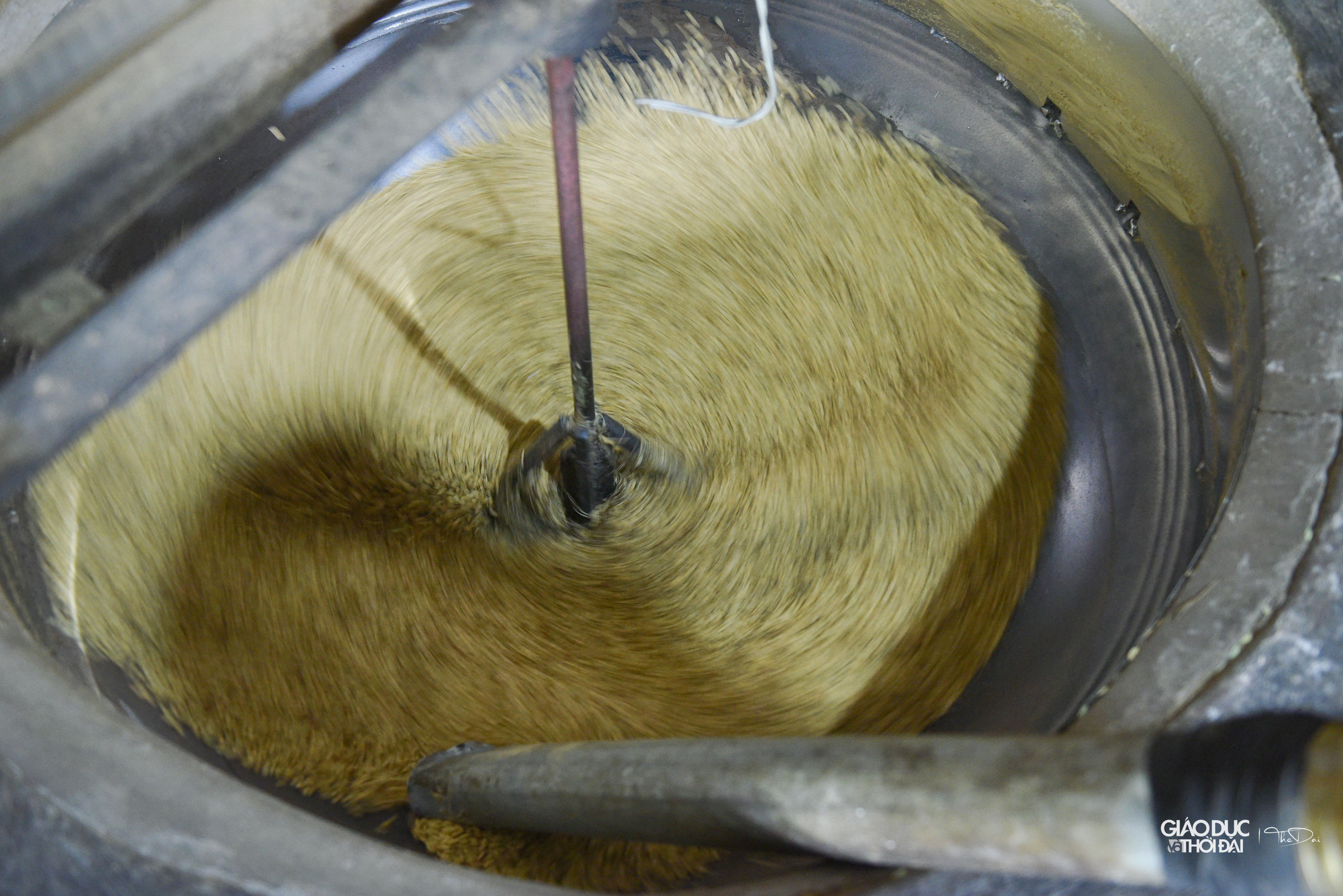 | Cốm sau khi rang xong sẽ được xát vỏ rồi phải mang giã ngay, không được để nguội. |
