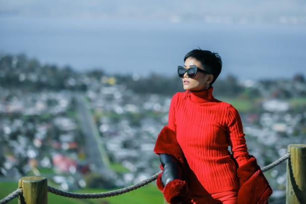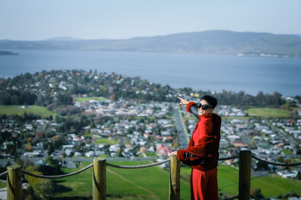 Trong ngày đầu tiên, người đẹp tham quan khu du lịch Te Puia – nơi lưu giữ nhiều nét đặc trưng của người Maori. Chọn bộ trang phục màu đỏ với áo len cổ lọ và quần kaki ngắn, phối cùng áo khoác lông cá tính, Hoa hậu H’Hen Niê tạo dáng mạnh mẽ, cực chất với mắt kính đen.