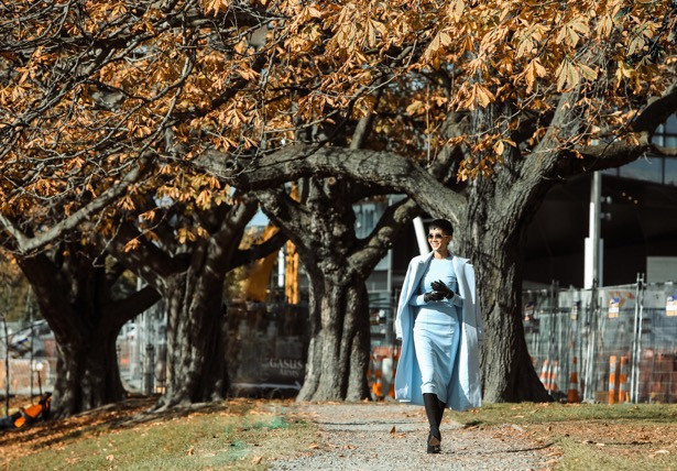 Khi hoa hậu H’Hen Niê di chuyển đến thăm quan thành phố Christchurch và tản bộ dạo quanh thành phố. Lần này, người đẹp diện tông xanh nhạt, với đầm bút chì phối cùng găng tay. Set trang phục vừa thanh lịch, vừa khéo léo khoe vóc dáng ba vòng của Hoa hậu.