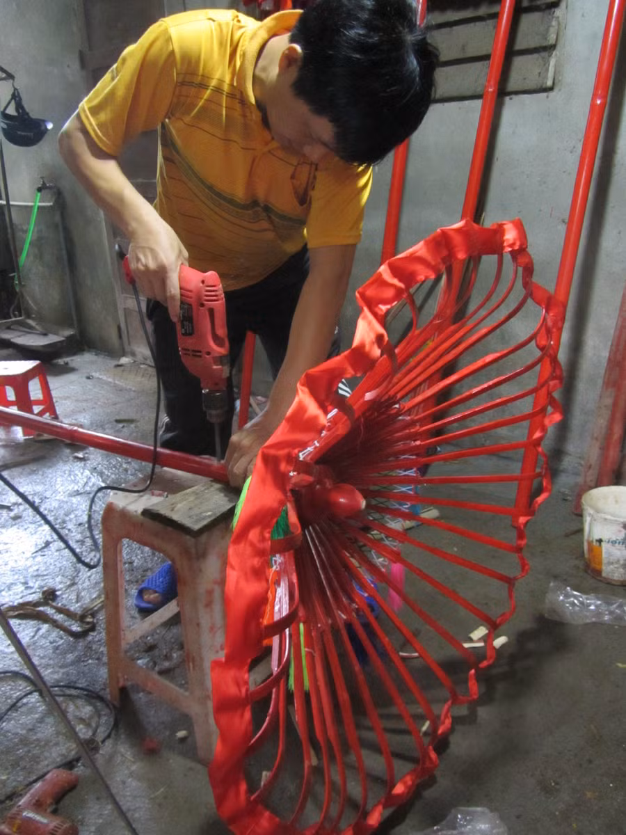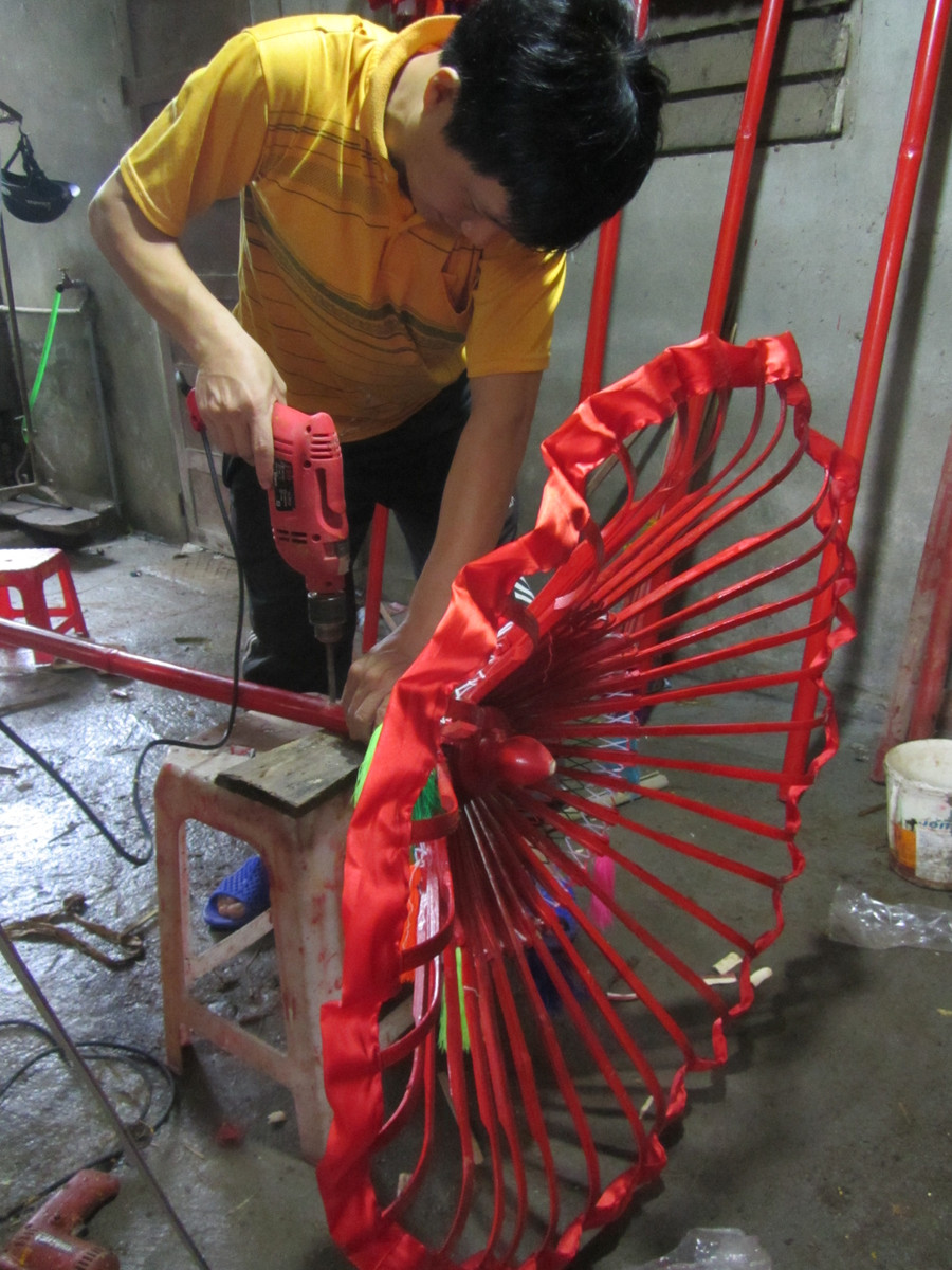 | Lọng do ông Tuyên và các cộng sự chế tác đã góp phần làm cho các lễ hội thêm phần long trọng, uy nghiêm. |