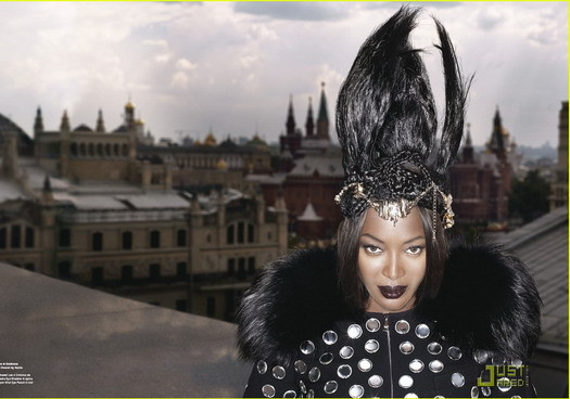 Với những trang phục màu đen sang trọng của Dior, Chanel, Marc Jacobs, Alexander McQueen, Dolce & Gabbana và Yves Saint Laurent, Naomi Campbell nhìn như một hoàng hậu nước Nga thế kỷ 21.