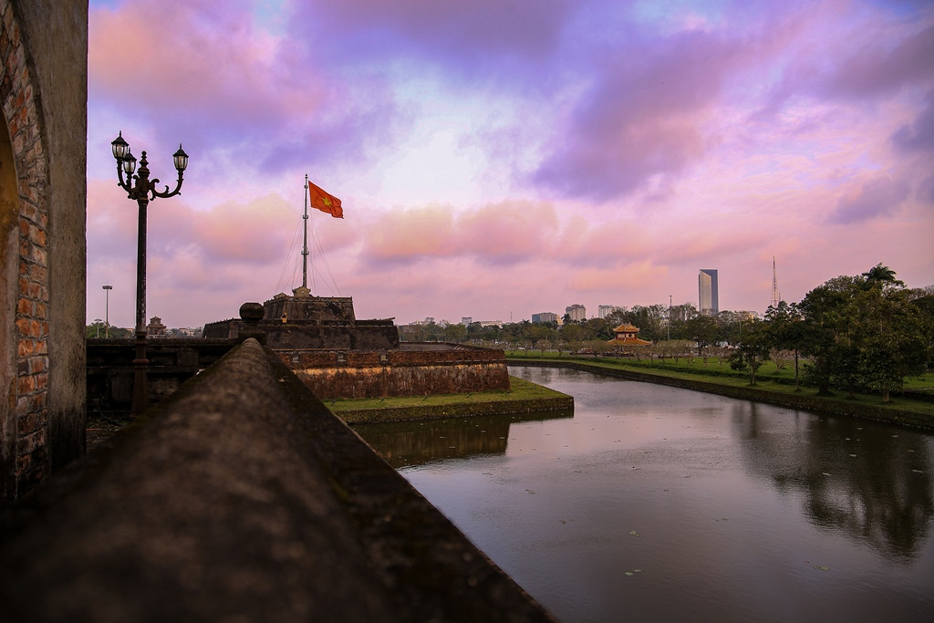 | Du khách có thể ngắm nhiều khung cảnh khác nhau của TP Huế, ngắm mây trôi qua đỉnh cột cờ, khung cảnh bình yên của xứ Huế luôn mang đậm dấu ấn với người dân nơi đây và du khách ghé thăm. (Ảnh: Hoàng Hải). |