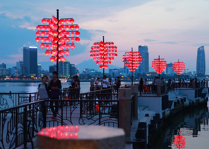 Trải nghiệm thú vị khác là ngắm Đà Nẵng về đêm từ sông Hàn. Du thuyền dọc bờ sông cho bạn thưởng thức món ngon và ngắm thành phố Đà Nẵng sôi động. Chuyến Tàu Rồng Sông Hàn sau 7 giờ 30 phút còn mang đến cảnh cầu Rồng phun lửa