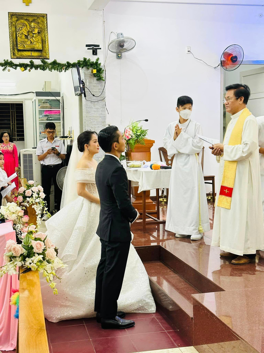 MC Nguyên Khang viết: "Hôm nay Khang đến dự lễ cưới Công giáo của Nguyễn Khánh Thi và Nguyễn Đoàn Phan Hiển rất trang trọng, ấm áp với sự tham gia của gia đình, người thân và đặc biệt là hai bé con.
