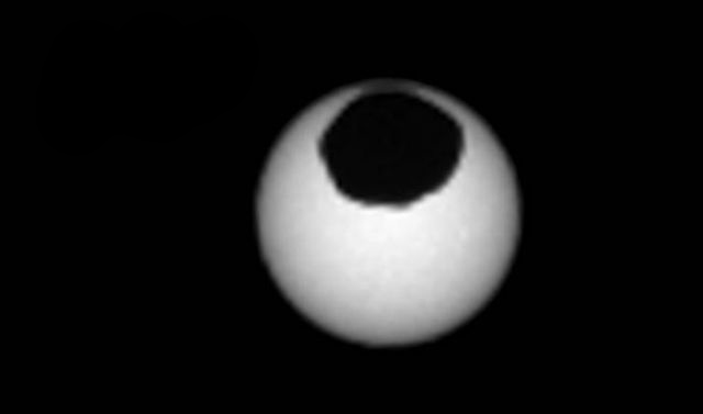 NASA vừa cho biết, xe tự hành Curiosity trên sao Hỏa đã ghi nhận được 2 lần nhật thực khác thường gần đây nhất, xảy ra trên hành tinh này, do hai vệ tinh là Deimos và Fobos gây ra. Lần nhật thực đầu tiên, do vệ tinh Deimos che Mặt trời, xảy ra ngày 17/3. Đường kính vệ tinh Deimos chỉ là 16 km, cho nên nó chỉ che được một phần nhỏ Mặt trời. Các nhà khoa học coi sự kiện đó là nhật thực, mặc dù trong thực tế có thể coi đó như sự di chuyển ngang qua (transit) mâm Mặt trời mà thôi. Thế nhưng, ngày 26/3, xe tự hành Curiosity ghi nhận được nhật thực do vệ tinh Fobos gây ra. Vệ tinh này có đường kính khoảng 22 km. Trước đó, ngày 25/3, một trong những camera hoa tiêu của Curiosity đã phát hiện sự giảm độ sáng trên bầu trời sao Hỏa, do Fobos di chuyển ở phía trước Mặt trời.