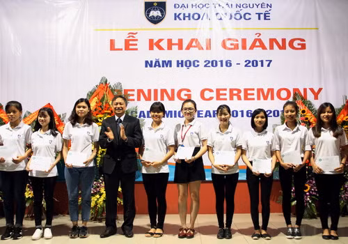 Tại lễ khai giảng, PGS.TS Nguyễn Duy Hoan – Trưởng Khoa Quốc tế đã gióng hồi trồng khai giảng năm học mới và tặng Giấy khen cho sinh viên Nguyễn Thị Uyên – sinh viên khóa I đã tốt nghiệp với thành tích xuất sắc; Tặng phần thưởng cho 25 sinh viên đạt kết quả xuất sắc trong năm học và trao tặng 7 suất học bổng toàn phần cho sinh viên quốc tế đến học tập trong năm học 2016 – 2017 và 4 tân sinh viên có thành tích đầu vào xuất sắc.