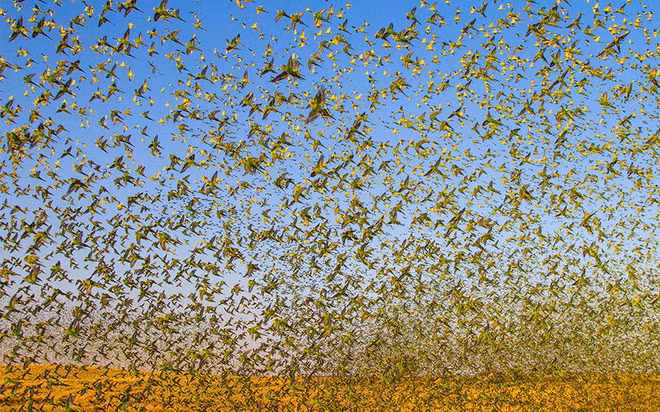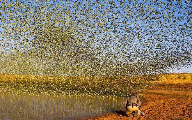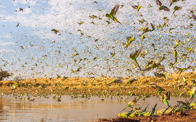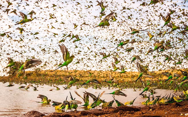 Ông Paul Williams đã rất bất ngờ khi thấy một đàn chim yến phụng trong chuyến thám hiểm thị trấn Alice Springs ở Australia.
