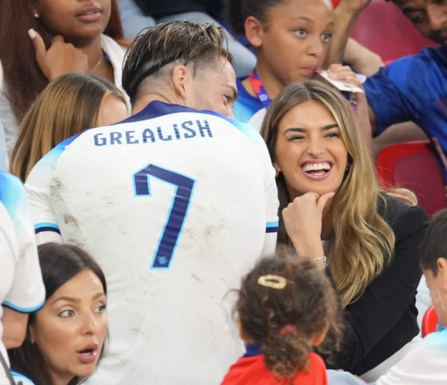 | Jack Grealish ôm bạn gái xinh đẹp Sasha Attwood sau chiến thắng 3-0 của Anh trước Wales. |