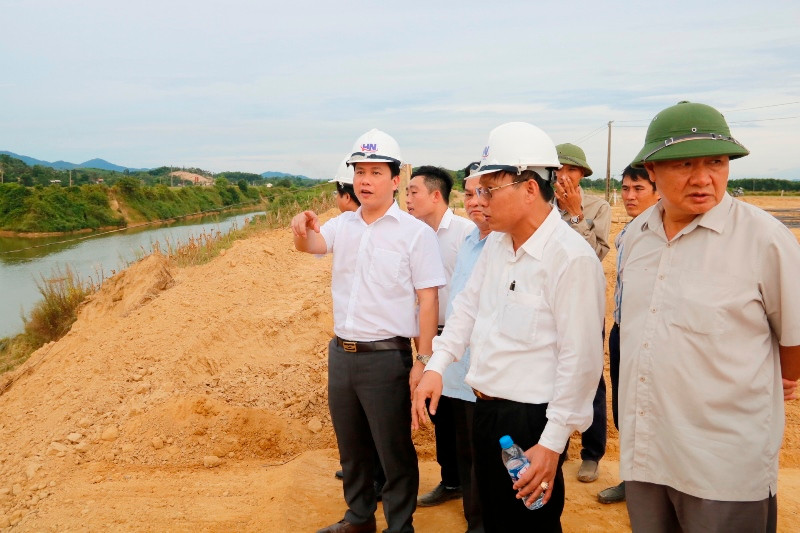 | Chủ tịch UBND tỉnh Hà Tĩnh Đặng Quốc Khánh cùng lãnh đạo huyện, xã kiểm thực địa các công trình dân sinh |