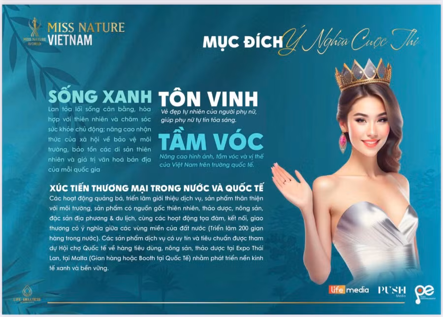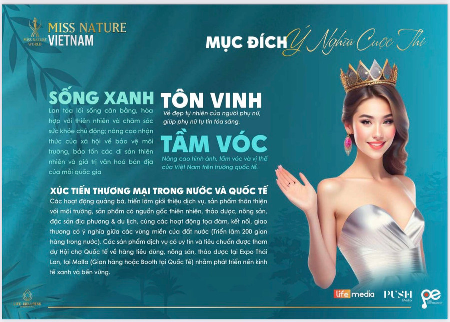 Cuộc thi cũng là cách góp phần tôn vinh vẻ đẹp phụ đẹp của phụ nữ Việt Nam, thực thi sứ mệnh mà cuộc thi đề ra cũng như tìm ra đại diện cho phái đẹp Việt Nam tham dự cuộc thi “Miss Nature World – Hoa hậu Thiên nhiên Thế giới” và các cuộc thi sắc đẹp quốc tế.