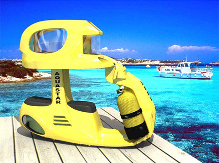 AS-2 Scooter được Aqua Star USA cải biến từ phiên bản AS-1 trước đó. Cấu tạo của nó khá đơn giản. Riêng phần mũ bảo hiểm được thiết kế lại để tăng khả năng quan sát dưới đáy biển. Chiếc mũ cung cấp lượng khí ô-xi trong 70 phút từ bình chứa. Hai động cơ của nó được cải tiến để có thể di chuyển cả theo chiều dọc và chiều ngang đồng thời. Tốc độ tối đa mà chiếc scooter này đạt được là 3.1 dặm một giờ, lặn được độ sâu tối đa là 12 mét.