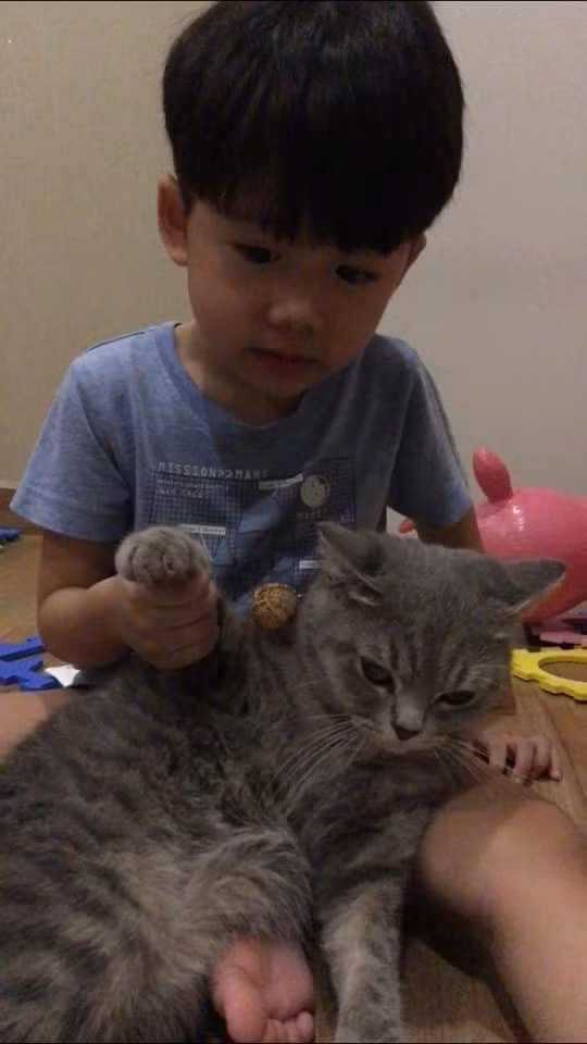 Cậu bé cố gắng ép chú mèo nhà mình giả làm phụ huynh.