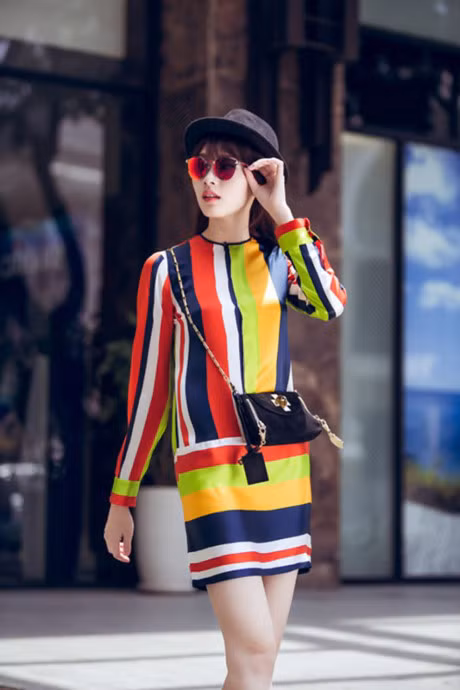 Cuộc chơi với những đường kẻ dường như là cuộc chơi chẳng phút nào ngừng nghỉ trong thời trang. Thay vì giới hạn trong những đường kẻ đen trắng đơn thuần, các nhà mốt lại đang tô vẽ trang phục hè với vô vàn sắc màu sống động trên những chiếc đầm maxi, chiếc váy xòe hay quần loe bay bổng. Thanh lịch nhưng vẫn rất đỗi trẻ trung, ngẫu hứng là những điểm cộng của phong cách họa tiết này.