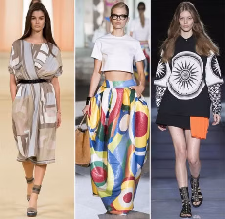 Những gam màu và hình khối tràn đầy sinh lực tạo ra những hiệu ứng đồ họa rất riêng mà chỉ có loại họa tiết này mới có. Họa tiết này dự báo gây sóng gió trong làng thời trang mùa xuân hè 2015.