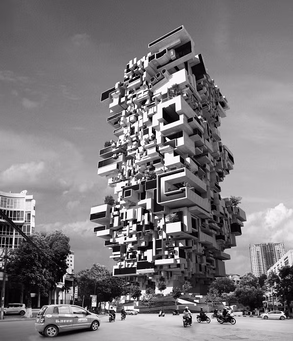 Tất cả những tinh hoa của phố phường Hà Nội như quán cóc vỉa hè, các khu phố bán lẻ, sân chơi tập thể, thậm chí cả vườn trồng hoa,... đều được "mang lên trời", hay nói cách khác bản thiết kế chính là một phiên bản chọc trời của 36 phố phường” - kiến trúc sư trẻ hào hứng giới thiệu “đứa con tinh thần” của anh.