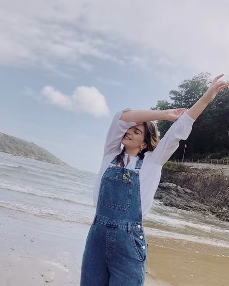 | Theo The Sun, sau trào lưu pose dáng kiểu "Baby giraffe" (tạo dáng chân trước chân sau tạo hiệu ứng chân dài hơn) và "Plandid" (tạo dáng quyến rũ bằng cách nhìn hờ hững, vô định mà không nhìn thẳng vào ống kính), "Shmiling" là cách tạo dáng chụp ảnh tiếp theo "gây bão" trên Instagram. Ảnh: @charlottegshore. |