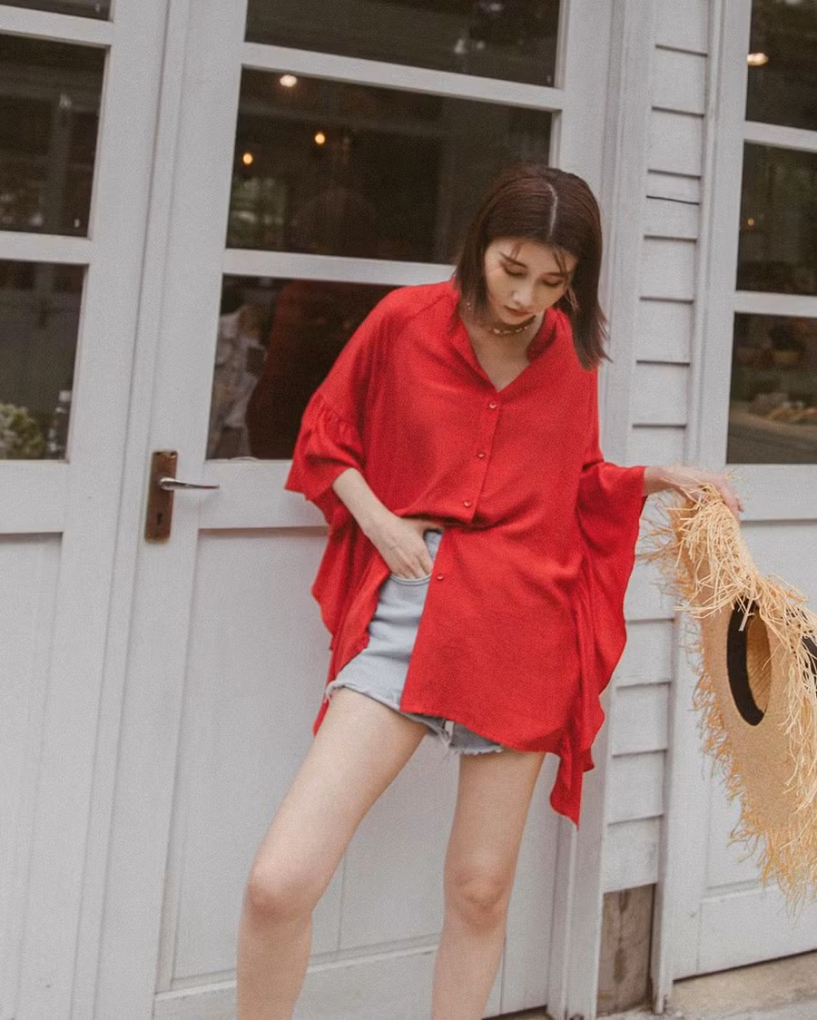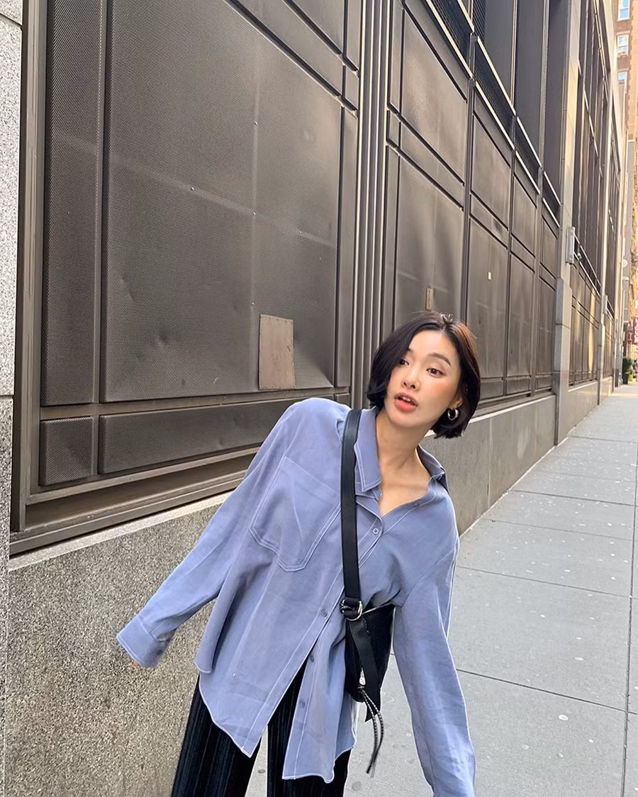 Chẳng hạn, chúng ta đã cảm thấy vô cùng quen thuộc với tuyệt chiêu buộc vạt áo, sơ vin nửa vạt, hay dùng áo sơ mi để thay thế một chiếc áo khoác mỏng thì cách đây không lâu, nhiều quý cô sành điệu lại phát minh thêm một kiểu mặc áo sơ mi cực thú vị khác, đó là nói không với sơ vin rồi thả 2 – 3 cúc áo dưới.