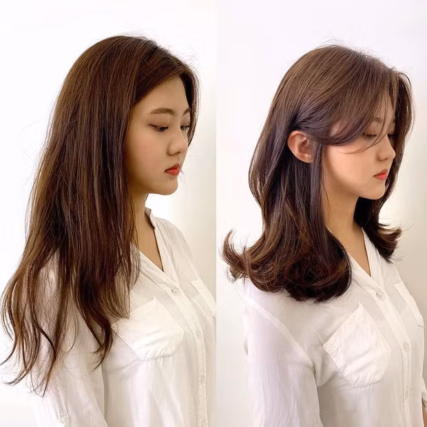Việc bạn cần làm là cắt layer tóc mái, tiếp đến dùng lô cuốn để có được kiểu mái chuẩn chỉnh như gái Hàn.