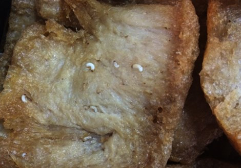 Chủ tiệm tạp hóa cho biết các đây khoảng 2 tháng chị mua 50 thùng (mỗi thùng 10kg) qua một đại lý tại phường Hiệp Thành, TP.Thủ Dầu Một. Đến nay chị Tưởng đã bán hết 30 thùng. Chị Tượng kiểm tra sản phẩm thì cũng phát hiện bên trong mỗi thùng sườn non chay cũng có nhiều giòi, bọ bò lúc nhúc. Điều đáng chú ý, tất cả các sản phẩm này đều còn có hạn sử dụng đến hết năm 2015.