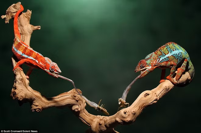 Những con tắc kè hoa có thể phóng lưỡi với tốc độ khoảng 21,6 km/h và kéo dài lưỡi gấp 1,5 lần chiều dài cơ thể.