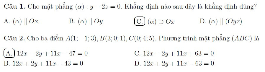 Với nội dung này, thầy Lam lưu ý, về kiến thức cơ bản, yêu cầu học sinh nắm vững toàn bộ các kiến thức về phương trình mặt phẳng trong sách giáo khoa (chương trình cơ bản) và đưa ra một số câu hỏi trắc nghiệm minh họa như sau: