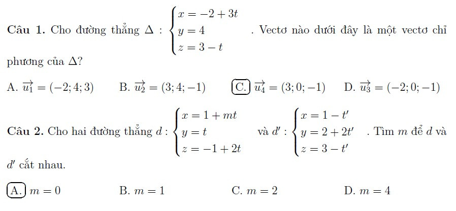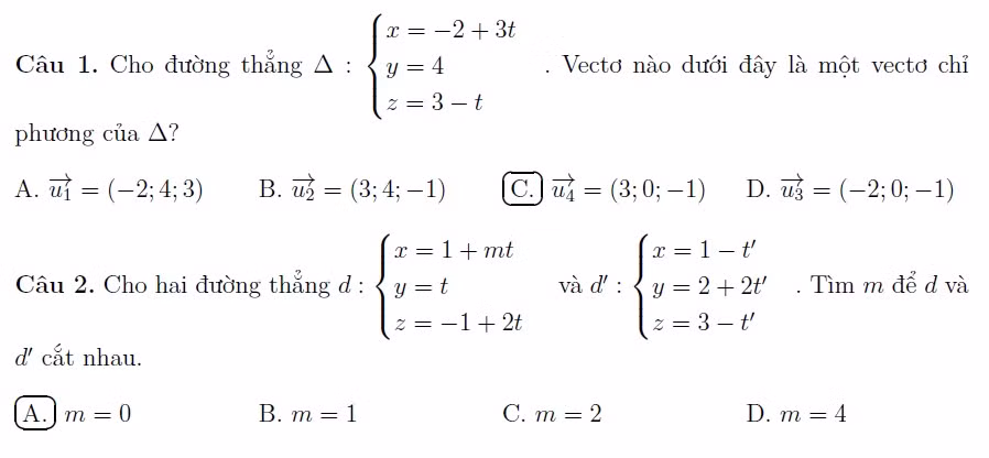 Kiến thức cơ bản: Yêu cầu học sinh nắm vững toàn bộ các kiến thức về phương trình đường thẳng trong không gian trong sách giáo khoa (chương trình cơ bản).
