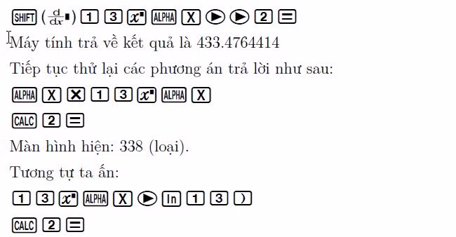Theo phân tích của thầy Trần Văn Phúc: Thông thường, nếu học sinh thuộc công thức tìm đạo hàm thì bài tập được giải quyết một cách dễ dàng. Tuy nhiên, giáo viên có thể hướng dẫn cách sử dụng máy tính cầm tay đề phòng trường hợp học sinh quên công thức.