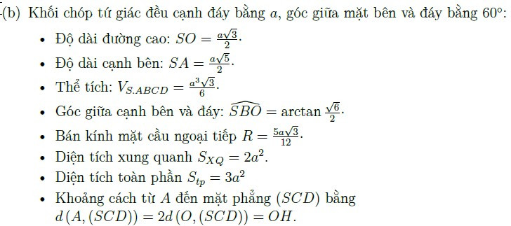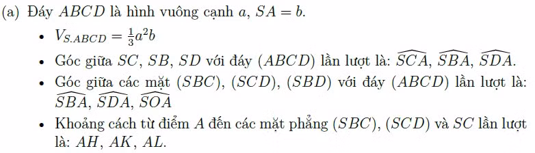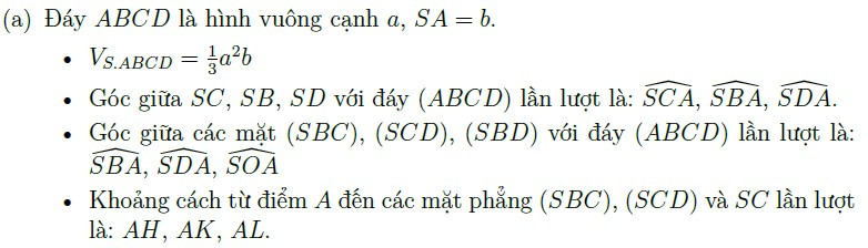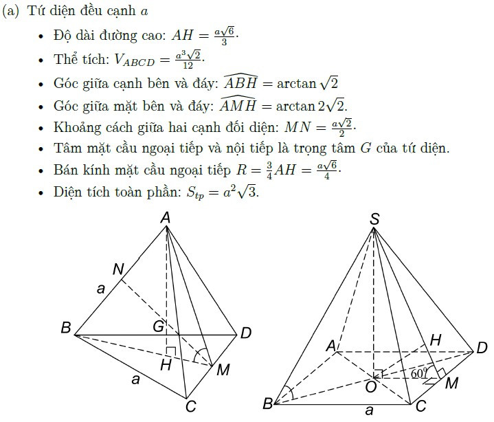 Với phương pháp này, thầy Liên Quốc Mỹ gợi ý cho học sinh giải và ghi nhớ một số yếu tố và thể tích của các khối đa diện thường gặp: