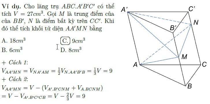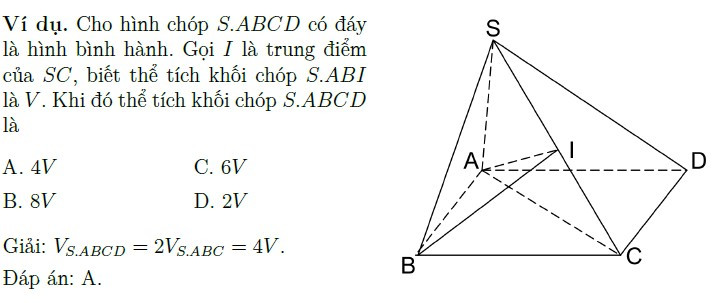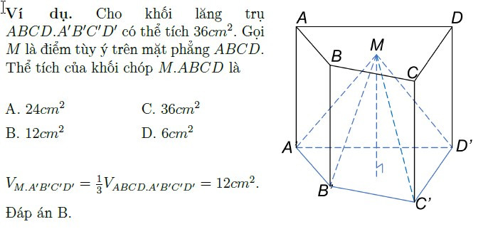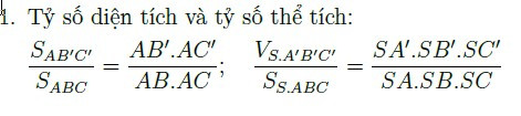 - Thể tích của các khối chóp và khối lăng trụ khi biết tỷ số diện tích mặt đáy của chúng: