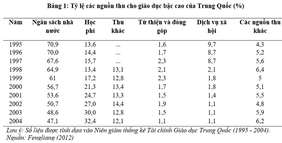 Tỷ lệ ngân sách nhà nước trong tổng chi tiêu giảm từ khoảng 92% vào năm 1993 xuống khoảng 67% vào năm 1999, sau đó là khoảng 43% trong năm 2005. Đồng thời, tỷ lệ của học phí và lệ phí trong tổng chi tiêu tăng từ khoảng 6% trong năm 1993 lên 17% vào năm 1999 và 32% vào năm 2004.