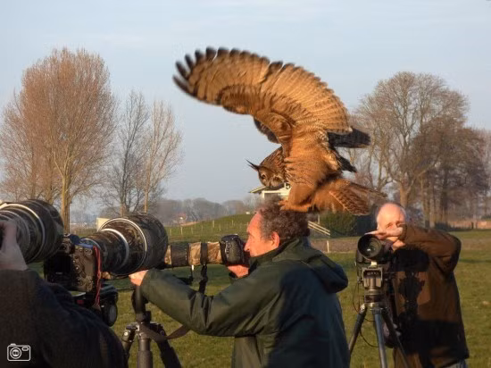 Nghệ sỹ nhiếp ảnh 48 tuổi, Menno Shaefer, người Hà Lan, đến thăm thị trấn Noordeinde chỉ để chứng kiến cảnh chú cú lạ thích đậu trên đầu người. Ông nói: "Cảnh tượng đó thật hài hước, nhưng tôi vẫn không hiểu nổi vì sao chú chim cú khổng lồ thích làm vậy".