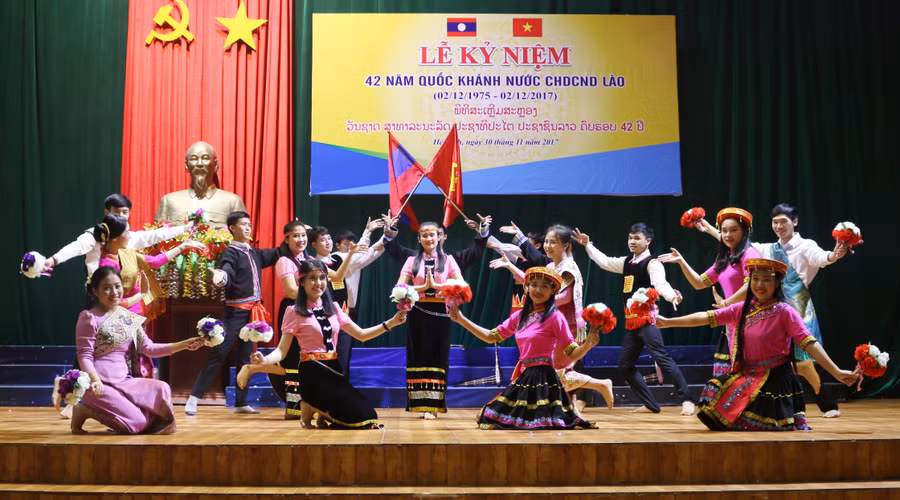 Chúc mừng nhân dân các bộ tộc Lào nói chung và các em Lưu học sinh Lào nói riêng trong buổi lễ kỷ niệm ngày Quốc khánh Lào, PGS.TS Nguyễn Đình Thọ – Hiệu trưởng nhà trường khẳng định: “Mối quan hệ hữu nghị, truyền thống, đoàn kết đặc biệt và hợp tác toàn diện Việt Nam – Lào đã trở thành mối quan hệ mẫu mực, thủy chung hiếm có trong quan hệ quốc tế, thành tài sản chung vô giá của hai dân tộc.