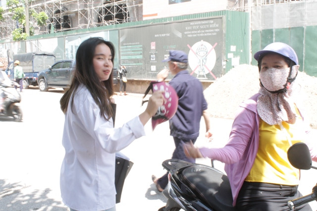 | Ông bố này luôn nắm tay con gái từ cổng trường thi qua đường |