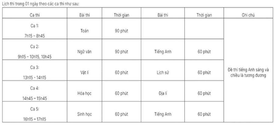 Năm nay, kỳ thi đánh giá năng lực do Trường ĐH Sư phạm Hà Nội tổ chức diễn ra vào ngày thứ Bảy, 6/5. Lịch thi theo các ca thi cụ thể như sau (xem bảng trên):