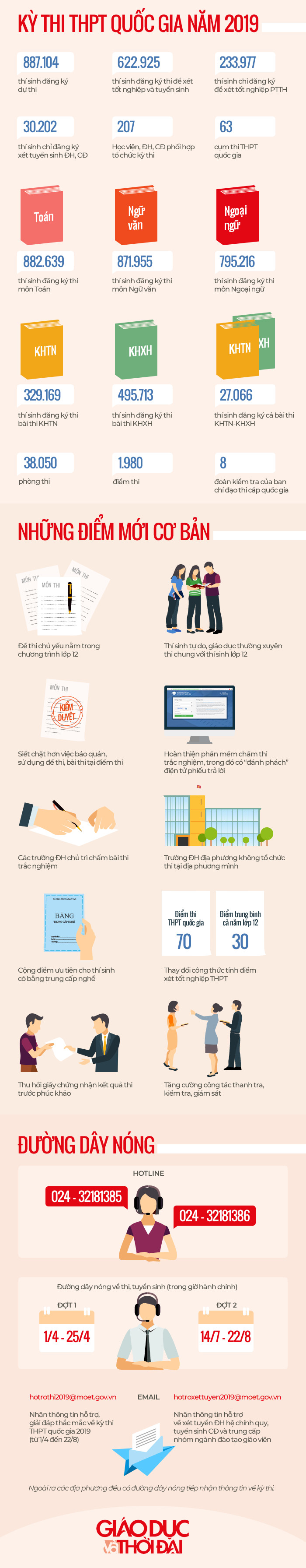 Kỳ thi THPT quốc gia 2019 sẽ bắt đầu từ ngày 24/6 (làm thủ tục dự thi) đến ngày 27/6/2019. Dưới đây là những thông tin đáng chú ý về Kỳ thi quan trọng này.