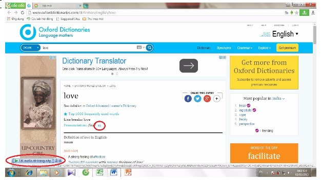 Bước 1: mở một trang web tra từ có phiên âm bằng âm thanh