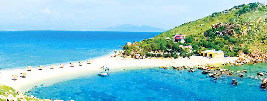 Bạn có thể thuê ghe chở ra đảo, bơi thuyền thúng hoặc chèo xuồng với thời gian ra đảo mất khoảng 10 phút. Nếu muốn trải nghiệm cả hai thì bạn đi khoảng 200m bằng thuyền thúng rồi lên tàu đánh cá của ngư dân theo ra biển.