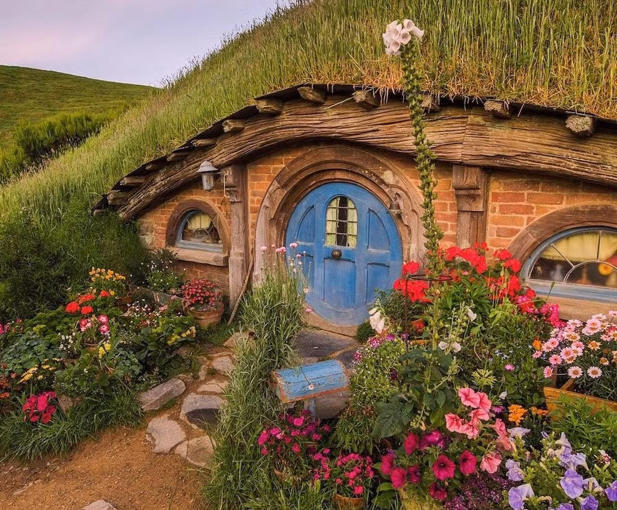 | Nếu là tín đồ nghiền phim The Hobbit, bạn có thể dễ dàng nhận ra ngôi nhà cửa xanh Bag End của nhân vật chính Bilbo Baggins. Ngôi nhà có tán cây sồi phủ bóng phía trên hòa hợp với khung cảnh thiên nhiên nhưng vẫn đậm chất châu Âu cổ xưa. Nhà của Bilbo Baggins nhận được sự quan tâm nhiều nhất của du khách khi ghé thăm nơi đây. |