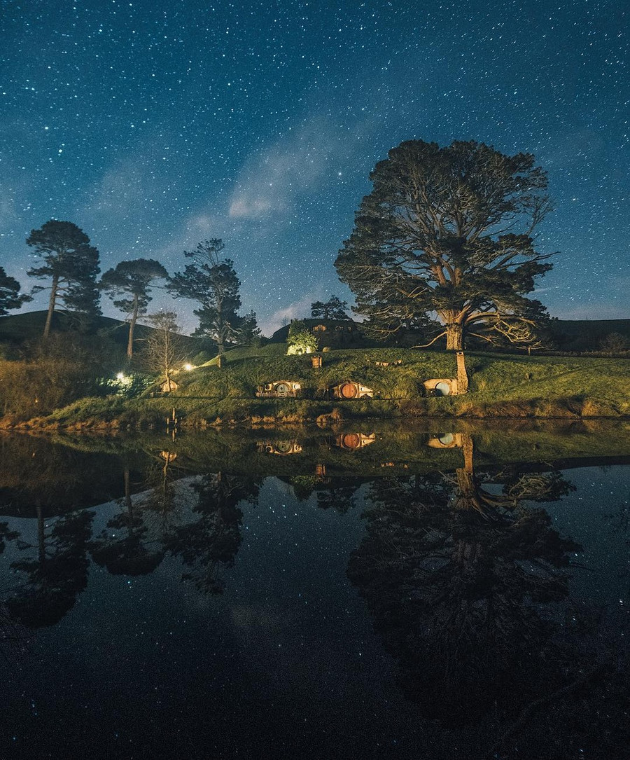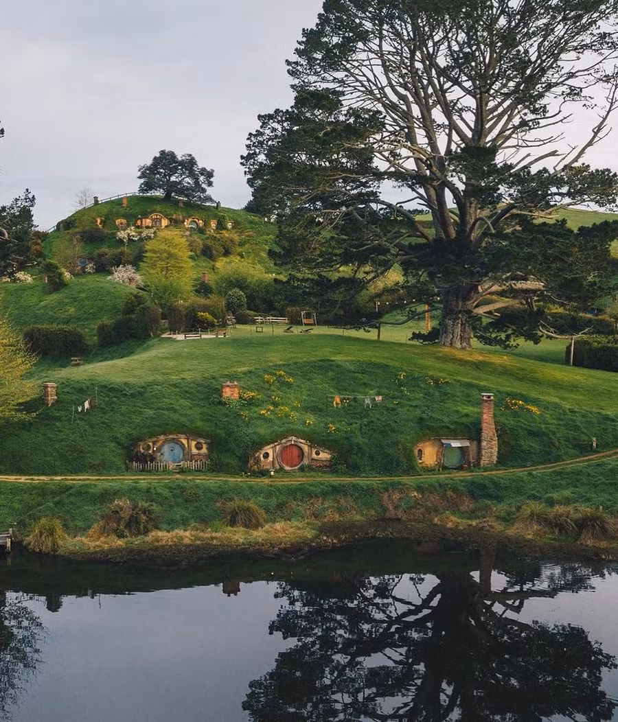 | Là bối cảnh trong các bộ phim nổi tiếng Chúa tể của những chiếc nhẫn và The Hobbit, ngôi làng Hobbit ở Matamata, Waikato, trở thành một trong những điểm du lịch hấp dẫn nhất New Zealand. |